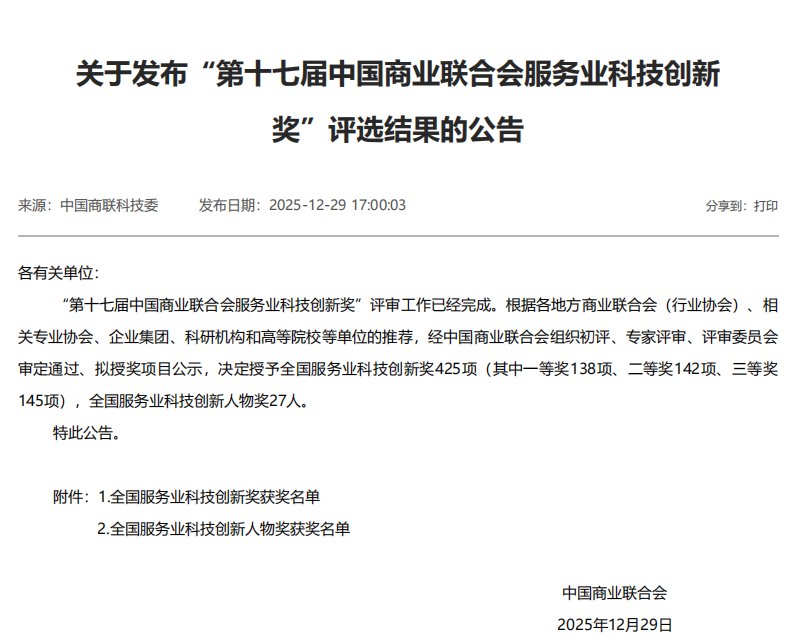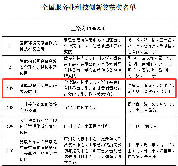 近日,《“第十七届中国商业联合会服务业科技创新奖”评选结果的公告》发布,共有425项研究成果获全国服务业科技创新奖,其中高职院校作为牵头单位获奖12项。中国商业联合会服务业科技创新奖是国家科技部公布的社会力量设立的科学技术奖项。我校为牵头单位,由机电工程学院(中德智能制造学院)沈建位老师作为第一完成人的成果荣获三等奖。