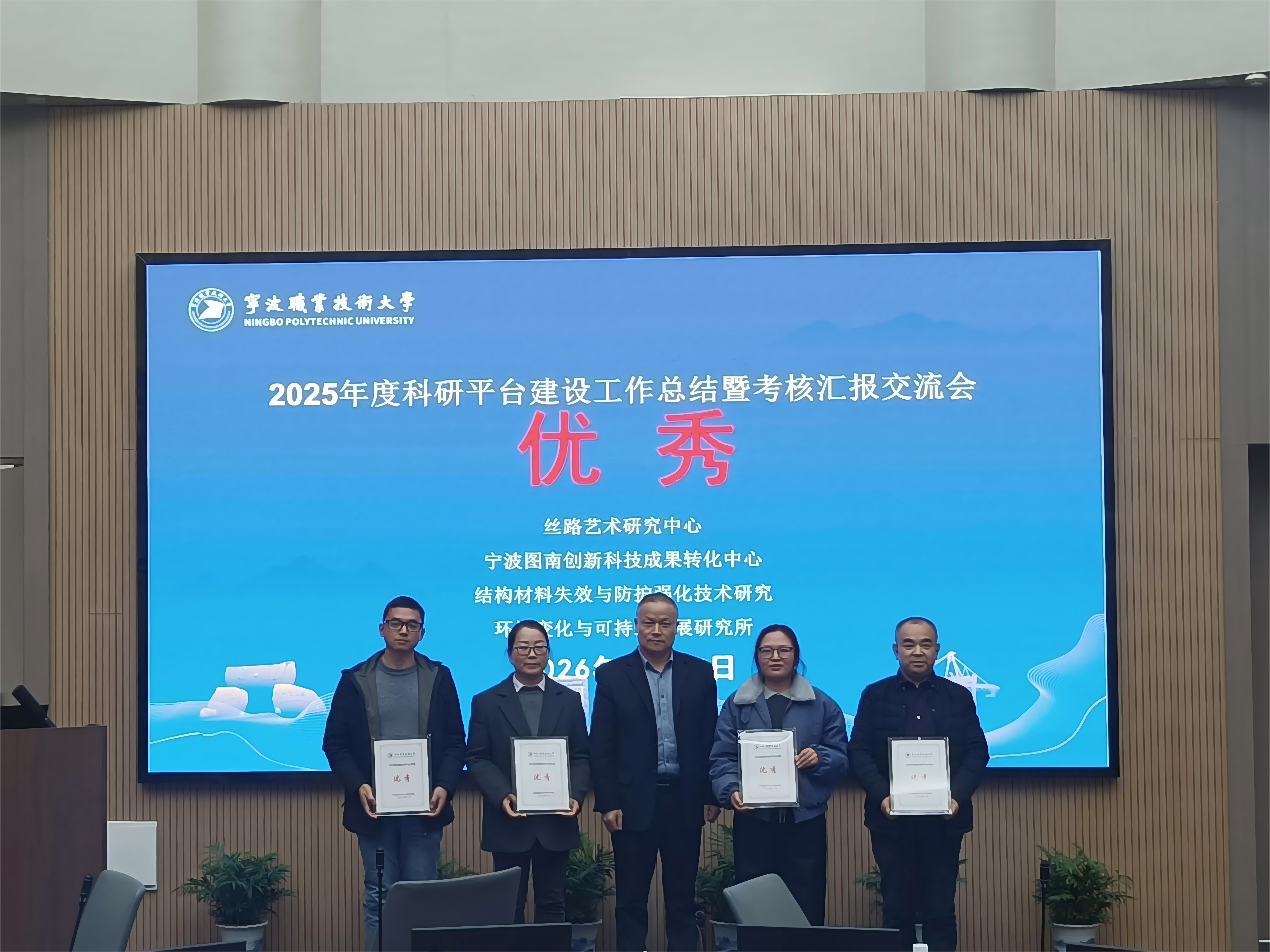 参加考核汇报的21个科研平台中,丝路艺术研究中心在艺术服务乡村振兴和中华非遗世界传播方面表现优异,宁波图南创新科技成果转化中心在关键技术联合攻关和科技成果转化方面成绩显著,结构材料失效与防护强化技术研究所在技术服务民生和推动地方产业转型方面表现亮眼,环境变化与可持续发展研究所在促进地方绿色发展和基础研究方面成果突出,最终丝路艺术研究中心等4个科研平台获评优秀。