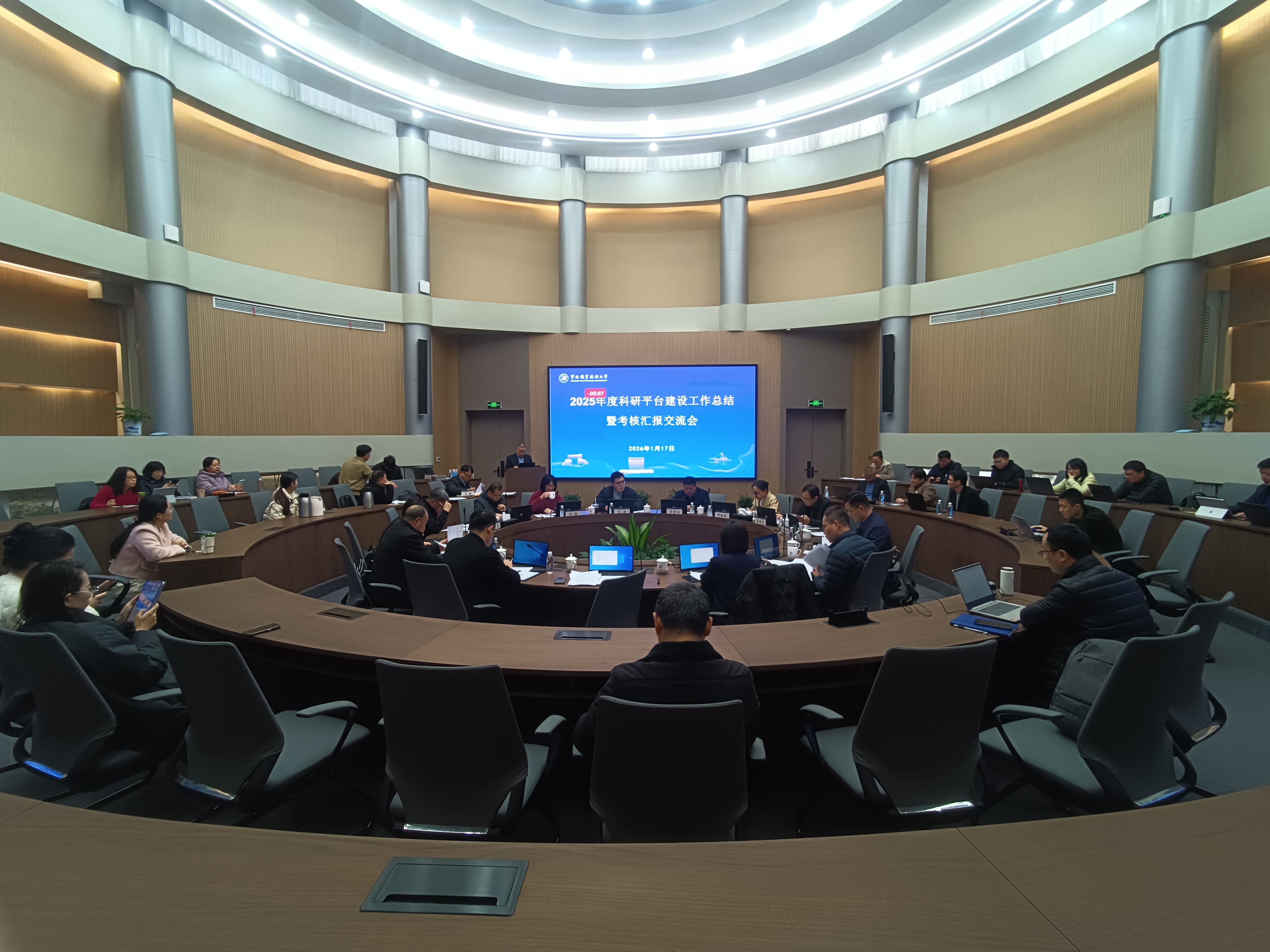会议第一阶段,科研处处长胡克满教授总结近年来学校科研平台建设取得的突破性进展,重点就管理运行机制优化、资源集约化配置等关键点提出制度化要求。